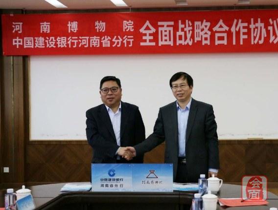 4月16日上午,河南博物院与中国建设银行河南省分行全面战略合作协议签约仪式在河南博物院举行。河南博物院院长马萧林与建设银行河南省分行党委书记、行长石永拴共同签署《全面战略合作协议》,双方正式开启探索“文化+金融”的全新模式。明年6月,与河南博物院一墙之隔的建设银行主题银行将全新亮相,让市民在银行里便能感受到传统文化的魅力。