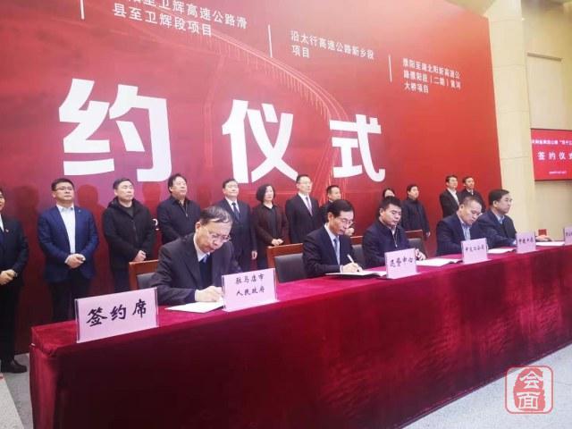本次签约仪式共有五项工程签约,分别是安阳至罗山高速公路上蔡至罗山段项目、濮阳至湖北阳新高速公路宁陵至沈丘段项目、濮阳至卫辉高速公路华县至卫辉段项目、沿太行高速公路新乡段项目、濮阳至湖北阳新高速公路濮阳段(2期)黄河大桥项目。