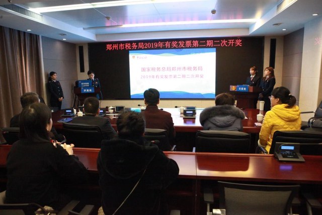 今天上午,国家税务总局郑州市税务局举办2019年有奖发票第二期二次开奖活动,在公证处的全程监督下,从待开奖的40.59万张发票中现场抽取了14张中奖发票,奖项共计70万元,分别为一等奖1名20万元、二等奖3名10万元、三等奖10名2万元。