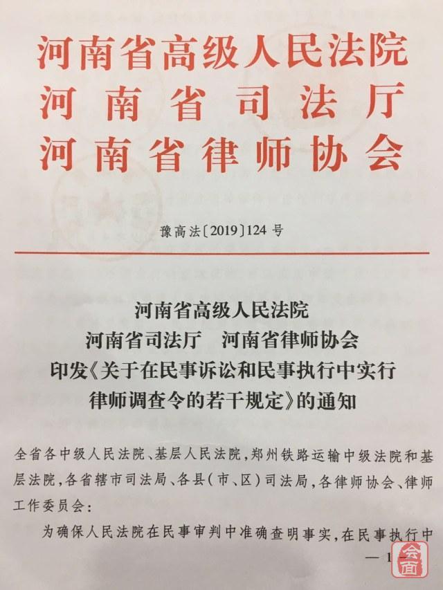 河南省高级人民法院与省司法厅、省律师协会日前共同发布了《关于在民事诉讼和民事执行中实行律师调查令的若干规定》,通知发布后立刻引发法律界反响,律师调查令能否被认可?能否全国通用?这些成为律师们最担忧的问题。