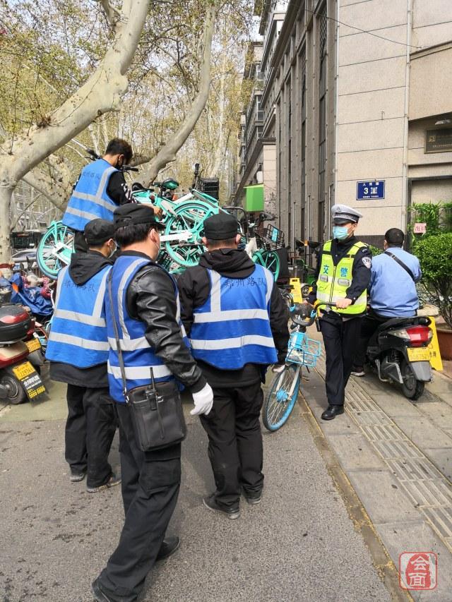 治理重点是机动车和非机动的乱停乱放违法行为,对驾驶人在现场的乱停乱放的机动车,予以劝离,驾驶人不在现场的乱停乱放的机动车,粘贴违法停车告知单,严重影响道路通行的予以强制拖移。在人民路工二街路口,联合执法队员对乱停乱放的共享单车予以强制拖移。另外,在工二街上,对于新铺设的非机动车道,许多电动自行车还没养成走非机动车道的习惯,交警就打着手势引导电动自行车走非机动车道。