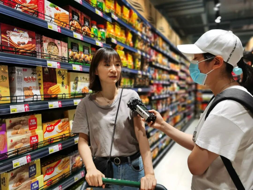 ▲郑州全媒体记者采访前来购物的市民