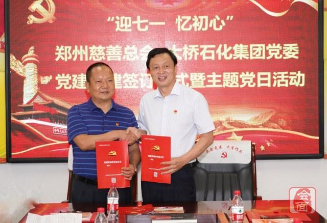座谈会上,郑州慈善总会、大桥石化集团有限公司就今后党建工作长期合作签约《党建共建单位合作协议》;郑州慈善总会向大桥石化赠送《郑州慈善风采录》《郑州慈善诗词选》,大桥石化回赠自编自印系列党建书刊。