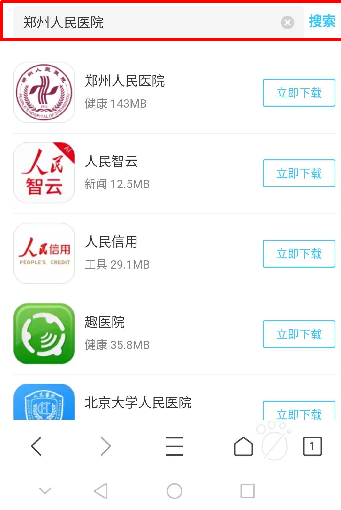 在安卓应用商城、苹果App store搜索“郑州人民医院”,下载安装;