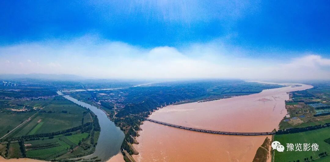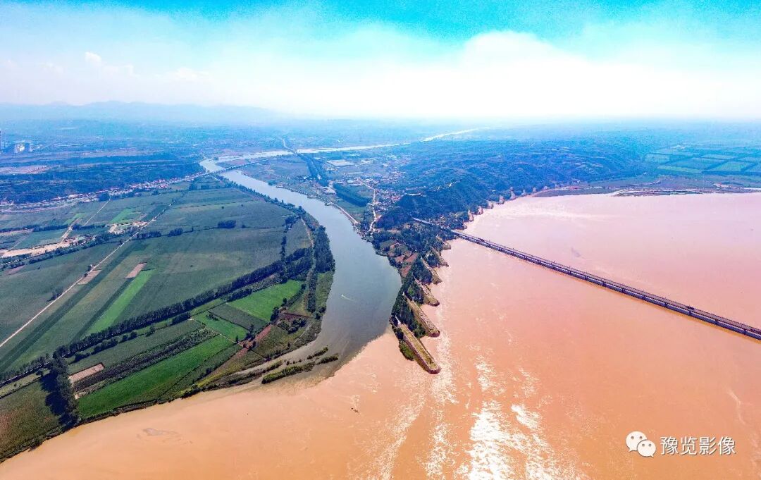 河洛汇流处,清澈的伊洛河水与黄河水界限分明