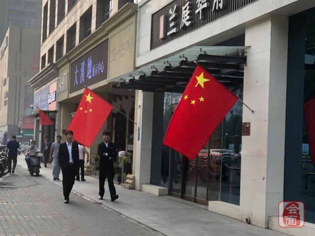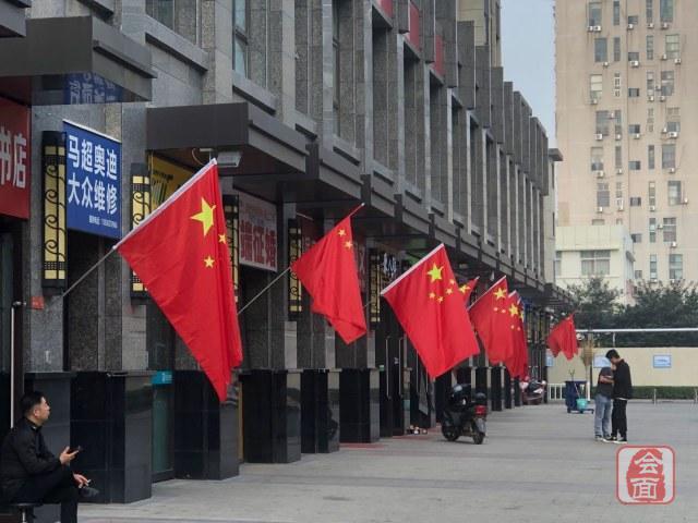 商户们早在几天前,就把国旗悬挂在自己的店门口。通过这样的方式,来庆祝祖国母亲生日的到来。