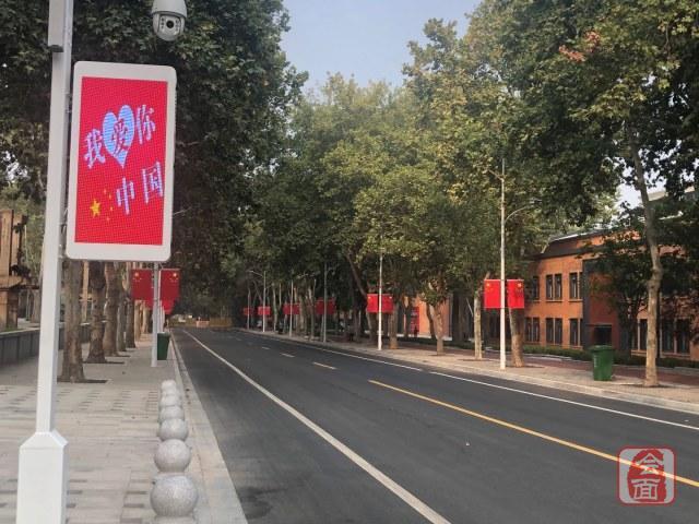 华山路上的芝麻街,园区装饰一新。鲜艳的五星红旗格外醒目。“我爱你,中国!”的字样不断闪现。