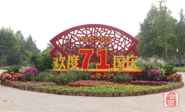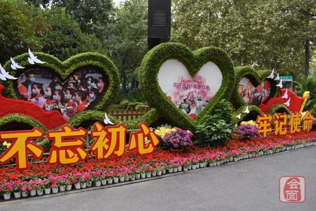 除了悬挂国旗,郑州的街角、广场、游园内还摆放了不少精心制作的立体花坛。
