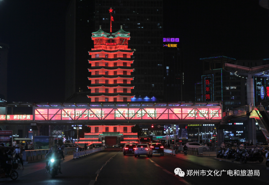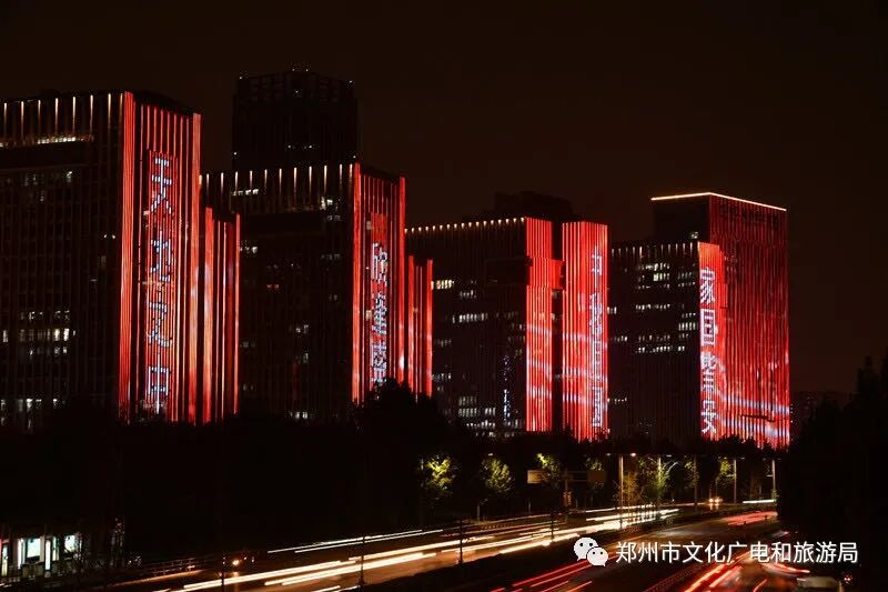 昨晚,郑州亮起“中国红”