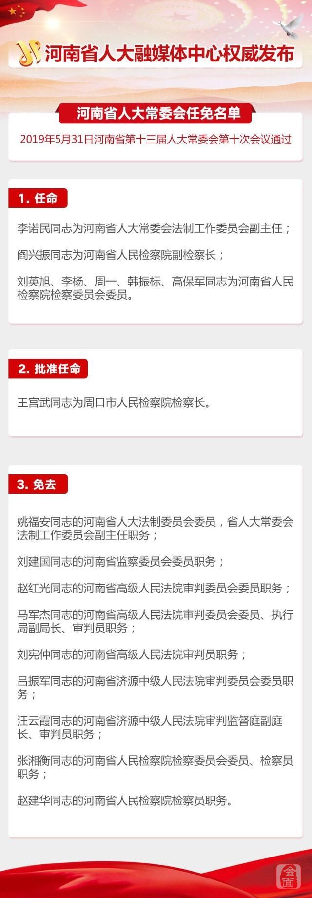 今天下午,河南省第十三届人大常委会第十次会议通过一批人事任免。