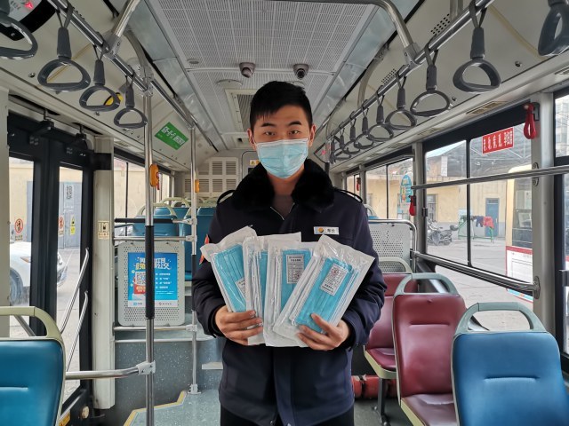 口罩传递爱!郑州这8条线路的公交车长向乘客赠送口罩