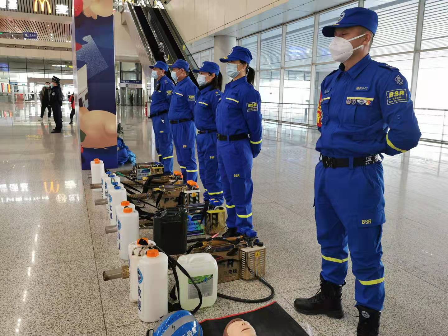 在疫情防控方面,除了做好车站人员的疫情防护,对旅客接触的服务设施设备和活动区域,如自动售取票机、饮水机、安检设备、候车厅座椅、售票窗口、检票口等,服务人员工作场所如调度室、售票室、服务台等,车站每天用消毒液进行不少于3次以上消杀。