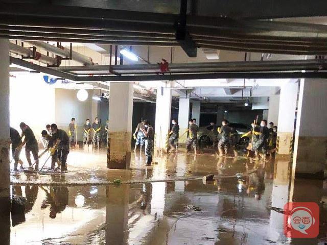27日上午,解放军信息工程大学的指战员来到社区, 150多名解放军指战员合理分工、行动迅速,立即投入到清淤工作中去,一小时、两小时、三小时……他们手持铁锹、扫帚等,挥汗如雨工具,持续与淤泥“作战”。经过整整一天的努力,共清理了地下室三层8000多平方米的面积,眼看着深厚的淤泥逐渐变浅,被掩埋几天的地面逐渐显露。