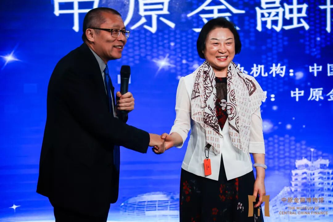 参观结束后,大家在博物馆演讲厅落座。开馆仪式之前,中国金融博物馆为肯定和鼓励在中原金融博物馆的策划和建设中做出突出贡献的同仁,特别为他们颁发“金融博物馆贡献证书”。