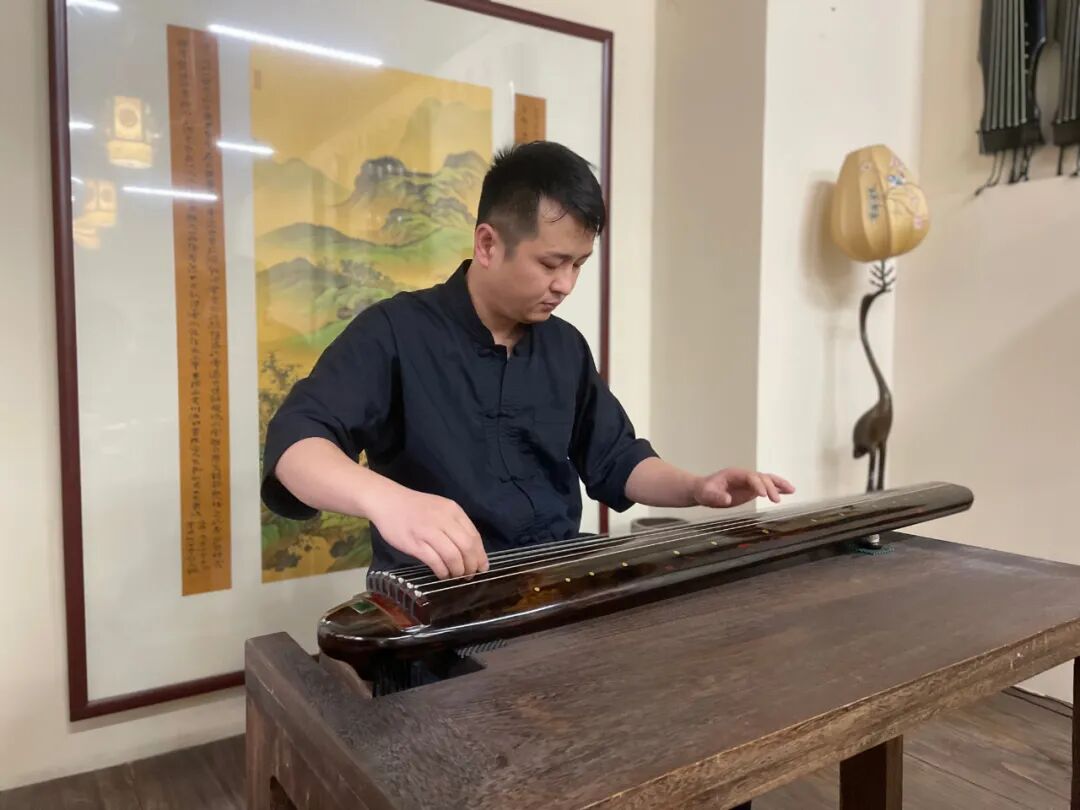 陶运成:“斫琴首先是选材,古琴的琴面一般是用杉木、桐木做的,以梓木为底。槽腹是斫琴一个很关键的步骤,琴的发音源于面板与底板所构成的共鸣箱,而槽腹就是要掏出共鸣箱来,这决定了古琴音色质量。槽腹的每一刀,凭得是斫琴匠人经年累月的经验积累;刮灰胎则是制作古琴最为耗时的一个环节。灰胎是由大漆与鹿角霜调和而成,像刮腻子一样一遍遍刮到古琴上,等自然干透后再打磨,仅上灰胎就需经过多遍,这样才能让古琴光亮不变色、耐磨耐腐。”