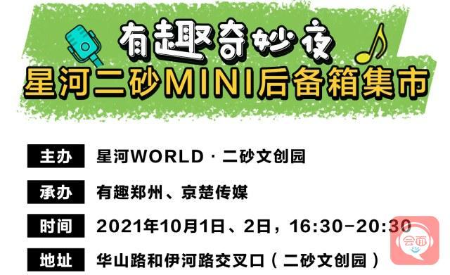 嗨,国庆去哪玩?有趣奇妙夜·星河二砂MINI后备箱活动将在10月1日、2日的下午四点半到晚上八点半开市,地点就在华山路和伊河路交叉口的星河WORLD·二砂文创园中,为广大市民的国庆假期增添一抹不一样的色彩。