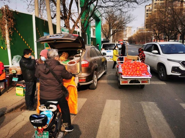 就在大家共克时艰的时候,一些商贩的做法却令人担忧。在东三街丰产路交叉口黄河批发市场门前,由于疫情管控,市场内已暂停经营,一些商户和外来商贩便在此聚集办起了“马路市场”。