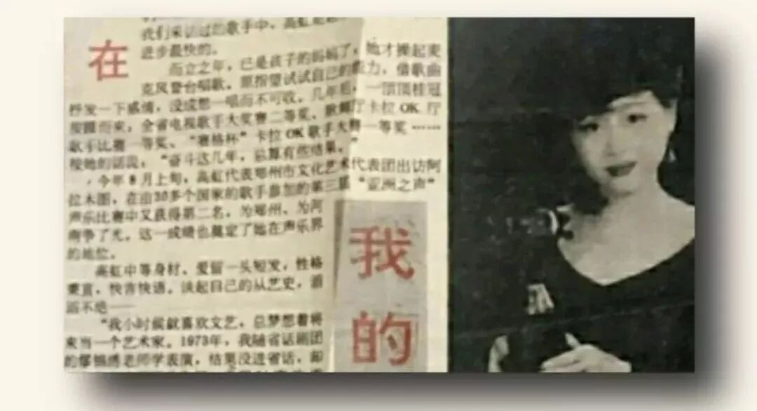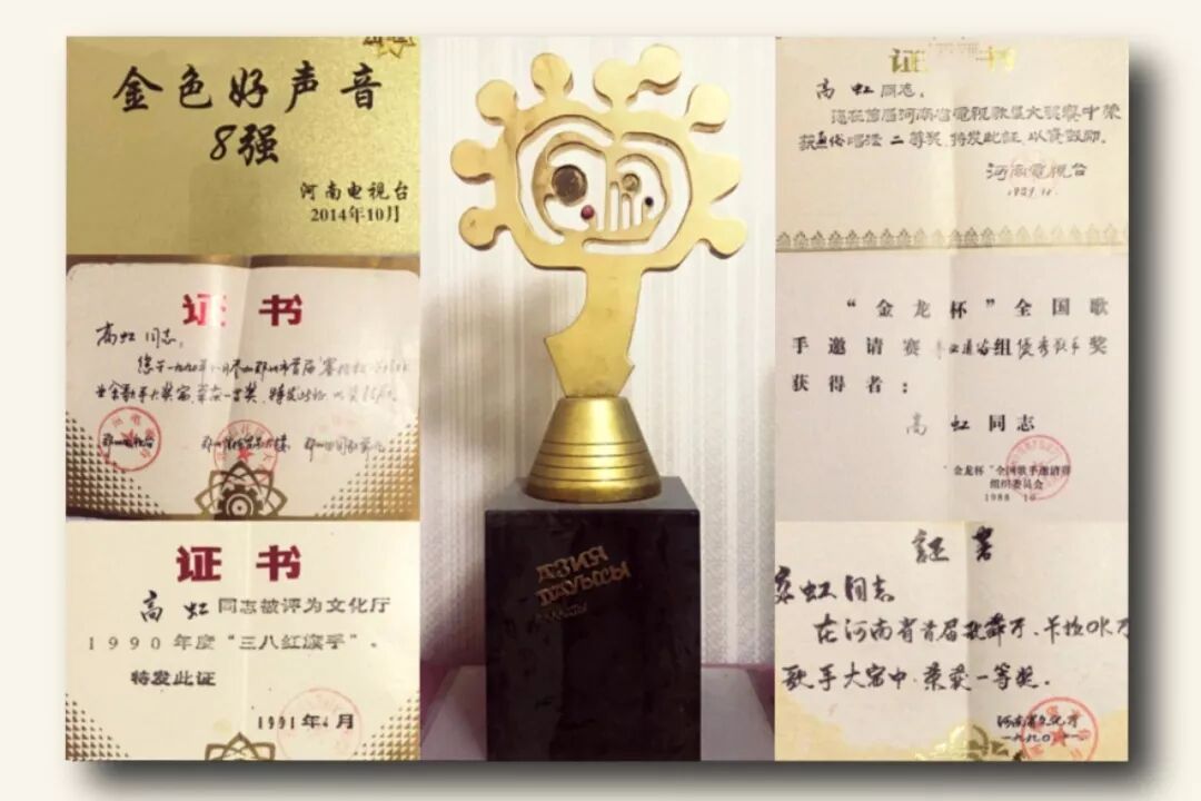 “在我们采访过的歌手中,高虹是起步最晚的,也是进步最快的。而立之年,已是孩子妈妈了,她才拿起麦克风登台唱歌。原指望试试自己的能力,借歌曲抒发一下感情,没成想一唱而不可收。几年后,一顶顶桂冠接踵而来:全省电视歌手大奖赛二等奖、歌舞厅卡拉ok厅歌手比赛一等奖、“赛格杯”卡拉OK歌手大赛一等奖……按她的话说:“奋斗这几年总算有结果。”今年8月,高虹代表郑州市文化艺术代表团出访阿拉木图,在30多个国家歌手参加的第三届“亚洲之声”音乐节中又获得第二名,为郑州、为河南争了光。”