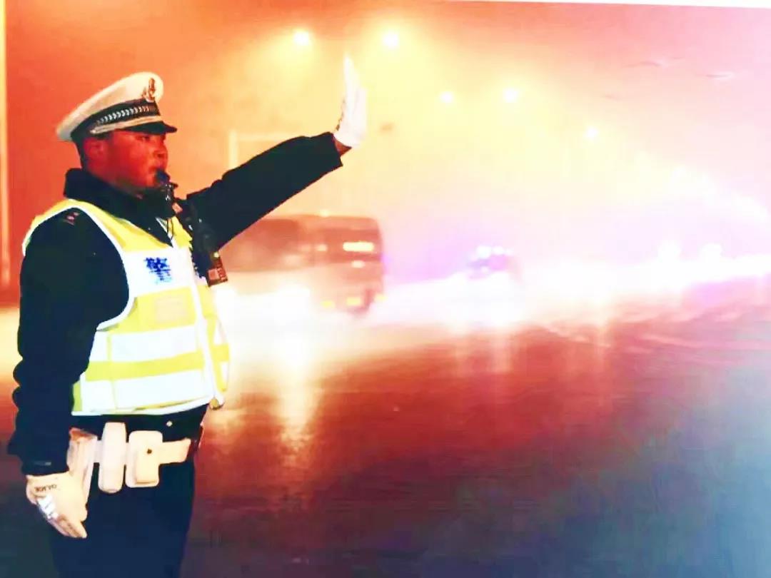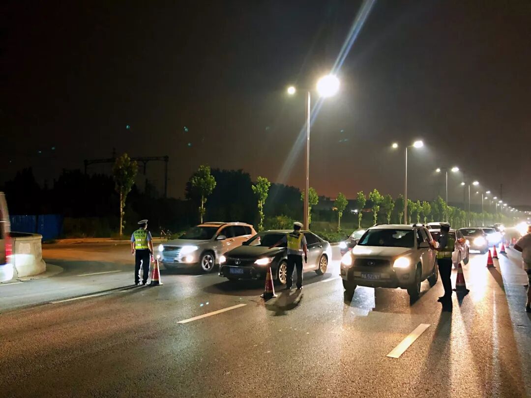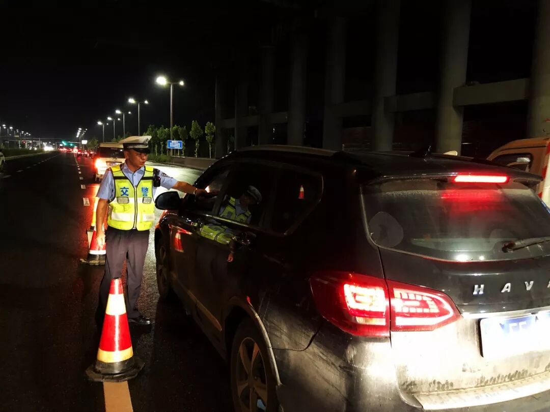 ▲杨帆带领同事设卡查处酒驾(限速防护区)