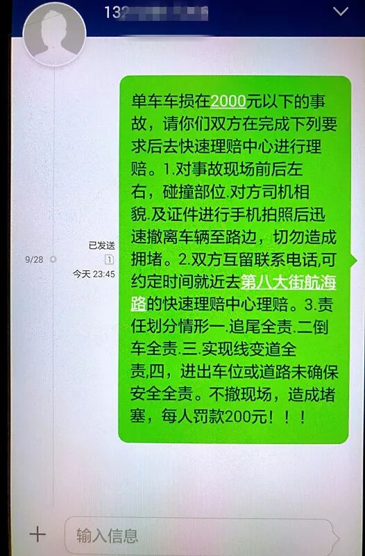 轻微车损交通事故占道,是造成郑州道路拥堵的顽疾,针对这一问题,杨帆每次接到派警后都会第一时间给报警人发送一条自己编写的《快速理赔便民短信》,告知事故当事人及时拍照取证后撤离现场,以免造成交通堵塞。经实践检验,报警群众在收看短信后,大部分都能按照短信要求,快速撤离现场,完成事故理赔。一条小短信,言简意赅,既节省了警力、排解了拥堵、也安慰了事故当事人迷茫、焦虑的心情,一举三得,实现了执法效率的提升,密切了警民关系。