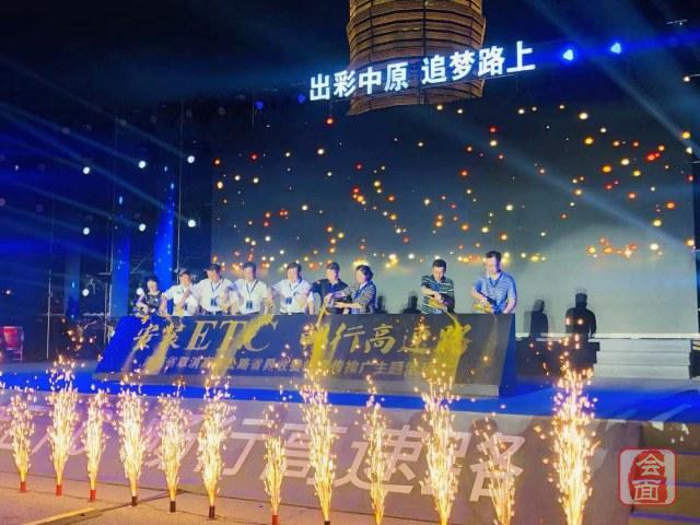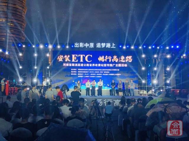 安装ETC,畅行高速路。今晚,河南省取消高速公路省界收费站宣传推广主题活动在如意湖广场举行。