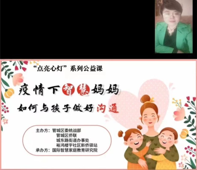 区侨联组织开展家庭赋能活动,邀请区裕鸿楼宇社区“新侨驿站”名誉站长祝晓琳提供线上公益心理辅导、情绪疏导,为家长提供疫情期间有效亲子沟通方式,解决亲子沟通“难点”“堵点”问题,吸引超过1000人次在线收看。