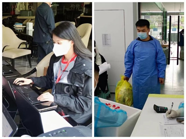 管城区委统战部的张铭珂作为流调员正在电脑上飞快记录,一通流调电话就记了六、七页,与病毒赛跑,晚一分钟,就多一分风险;“核酸样本转运存在一定风险性,时间紧,任务重,需克服一切困难,保证所有样本安全正点交接到实验室,确保万无一失。”最忙的时候,转运员白玉青要从早上5点忙到傍晚,吃不上热饭早已习以为常,穿在防护服里的衣服常常被汗水湿透。