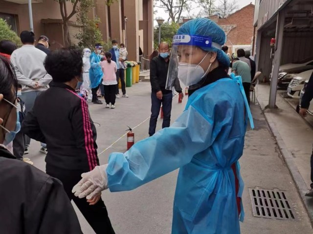 为缓解管控区工作人员力量不足的问题,区委统战部全体党员干部下沉至陇海市场附近楼院值守,在核酸检测现场,大家排查出入人员健康码,维持核酸采样现场秩序,帮忙搬运防疫物资,为居民派发生活必需品。