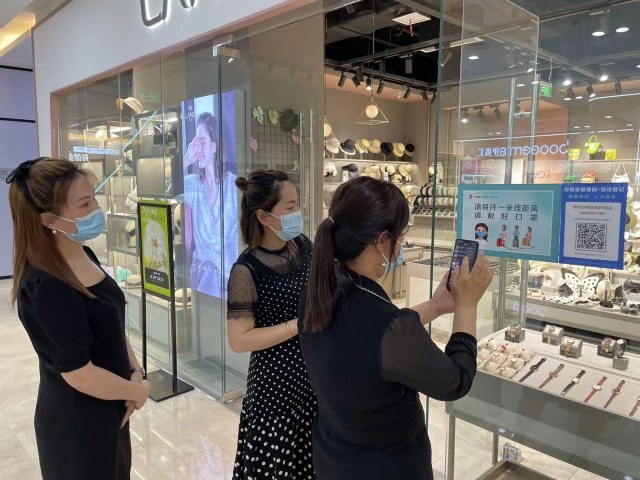 目前,郑州市正在积极推进“一门一码”“一店一码”“一场所一码”,确保所有适合场所“应设尽设”、出入人员“应扫尽扫”。某服装店店长李女士说,他们仅用了很短的时间便完成了场所码的申领和张贴,“我们接到商场的通知以后,就在郑好办线上申请了一个场所码,申请完大概过了半个多小时吧,商场就把场所码打印好给送过来了,我们就贴到了店铺门口最显眼的位置。”