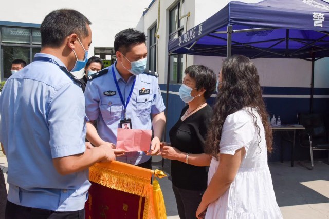 今天上午,市民常女士、王女士将一面绣有“公安百姓心连心 警民鱼水一家亲”的锦旗和感谢信送到了郑州市公安局金水分局南阳新村派出所所长李昊手中,对派出所民警帮助其找回走失老人表示万分感谢。