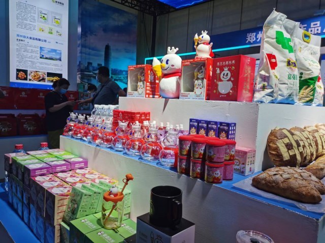 此外,好想你、蜜雪冰城、花花牛、锅圈食汇等本土品牌的拳头产品也在郑州展区集中亮相。蜜雪冰城股份有限公司副总经理奚沿河说:“我们这次带的产品包含了预包装的茶饮料、小食品、文创周边,我们也想借此机会向全国去展示我们的茶文化、IP文化,让更多的消费者了解到‘世界雪王、老家郑州’。”