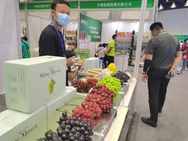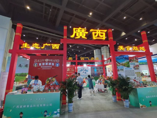 川味腊肉、潮州牛肉丸、玉林牛巴、桂林米粉、云南提子……记者在展览现场看到,饮料零食、农副产品等各色食品琳琅满目,让人垂涎欲滴。前来试吃、选购的市民络绎不绝。