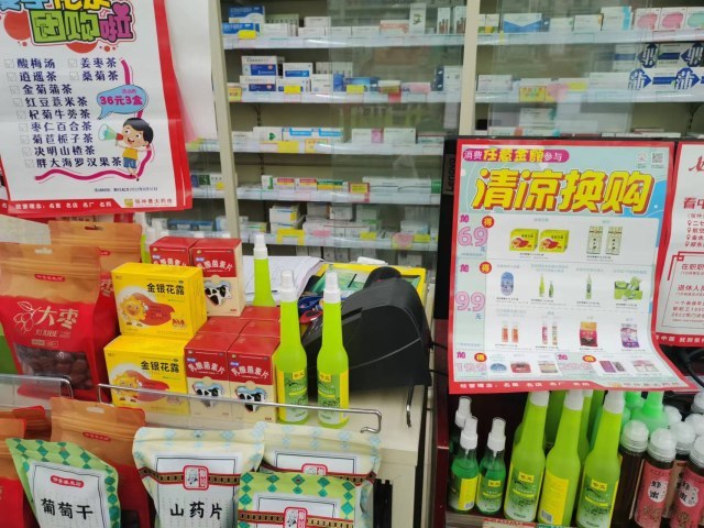 以藿香正气水、人丹、风油精为代表的防暑药品也成“清凉神器”。有的药店还专门开设了专柜,特别标示出“清凉消暑”等字样,张仲景药店店员表示,最近两个月,每天都有消费者来购买防暑药品,其中销售最多的是藿香正气类产品。