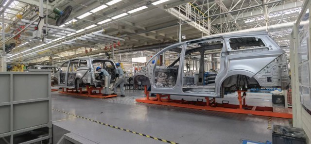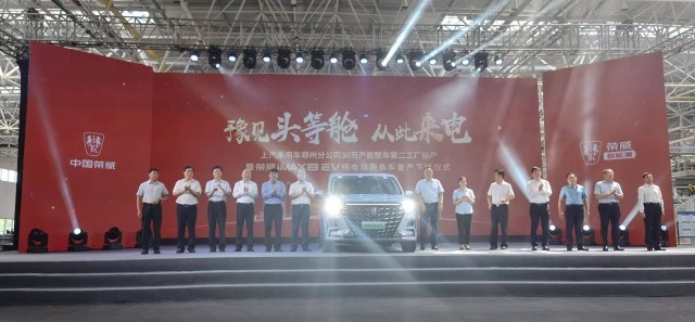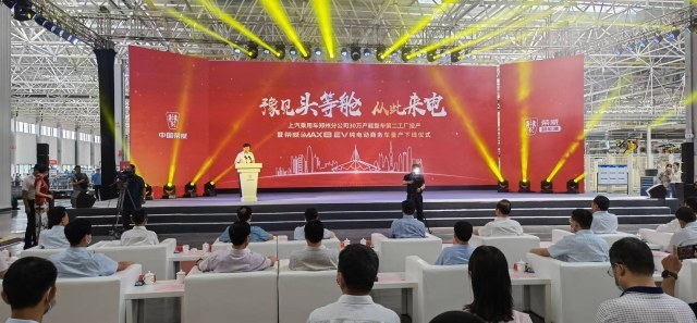 今天上午,上汽乘用车郑州分公司年产30万台整车第二工厂投产暨荣威iMAX8纯电动商务车下线仪式在上汽郑州工厂举行。