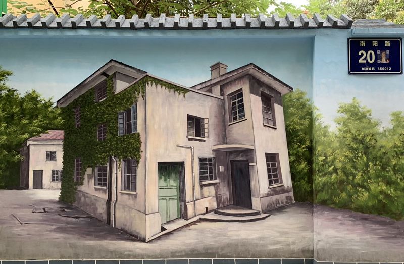 在南阳路与岗杜北街,路东处墙面上描绘着一幅幅郑州纺织机械厂生产生活的画面,最初建厂时的厂区大门、怀旧复古的苏式办公小楼、黄底红字的厂区介绍......这些生动的画面就像是一幅幅历史的画卷,让经过此处的人忍不住驻足观看。