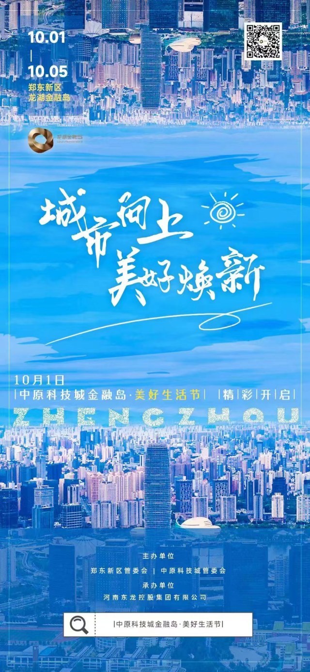 记者从郑东新区管委会了解到,以“城市向上 美好焕新”为主题的中原科技城金融岛首届美好生活节将于10月1日至5日在龙湖金融岛举办,届时,中原科技城将以一场集音乐、露营、运动、文创、美食、科技等时尚元素的城市嘉年华,充分展示郑州国家中心城市建设的华丽嬗变。