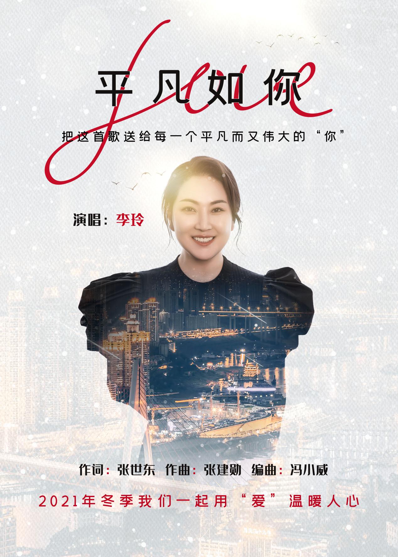 致敬在平凡生活中每一个不平凡的“你”。感谢在我们身边的每一个充满爱的平凡人!即将过去的2021年,是个不平凡的一年,突如其来的暴雨洪水/反复肆虐的新冠疫情让无数平凡的人投入一线奋战,从春节开始,披星戴月,多少日日夜夜,斗严寒,战酷暑,风雨兼程。他们是医生护士,消防战士,人民子弟兵,共产党员,交通警察,爱心志愿者,环卫工人……他们是像你我一样的普普通通的人,戴着口罩忙碌的他们,我们看不清他们的脸,但我们记住了他们伟岸的身躯,坚定的眼神,暖心的话语,伟大的义举。他们冲锋在前,无私奉献,时刻坚守前沿,谱写了一曲大爱无言的时代乐章!青年词作家张世东、知名音乐人张建勋和青年歌唱家李玲共同倾力打造的这首《平凡如你》,以朴实的语言走心的旋律动情的演唱,讴歌了这些平凡而又伟大的英雄群体,让我们共同唱起,为曾奋战在防疫抗洪一线的同胞加油!岁月记住了那么多把平凡做到极致的普通人,像一簇簇星光,点亮这个特殊的年份,温暖着亿万中原儿女的心房。