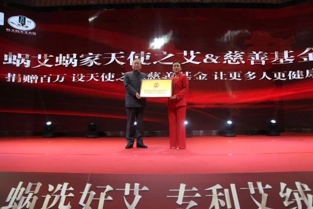 活动中,郑州慈善总会会长姚待献为“蜗艾蜗家•天使之艾”慈善基金揭牌,郑州慈善总会副会长王合生代表郑州慈善总会接受100万元爱心善款并向该公司颁发捐赠证书。