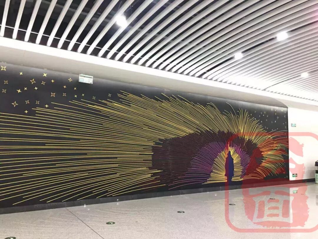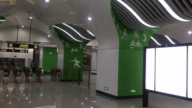 记者在现场看到,14号线的主基调是淡紫色,民族团结一家亲的大幅图片,也透露出迎接全国民族运动会的喜庆氛围。