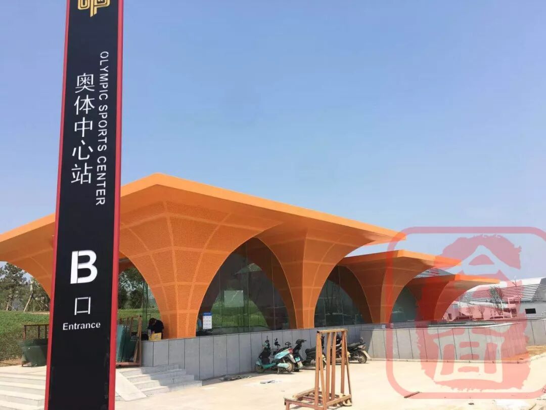 奥体中心站出入口,可以看到不远处的奥体中心体育馆