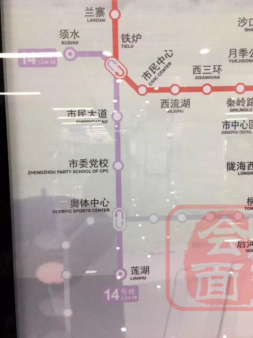 地铁14号线一期工程位于郑州市民文化服务区及周边区域内,起于须水站,止于莲湖站,共设6个站点,全长7.455公里。这6个站点分别为须水站、铁炉站、市民大道站、市委党校站、奥体中心站、莲湖站。
