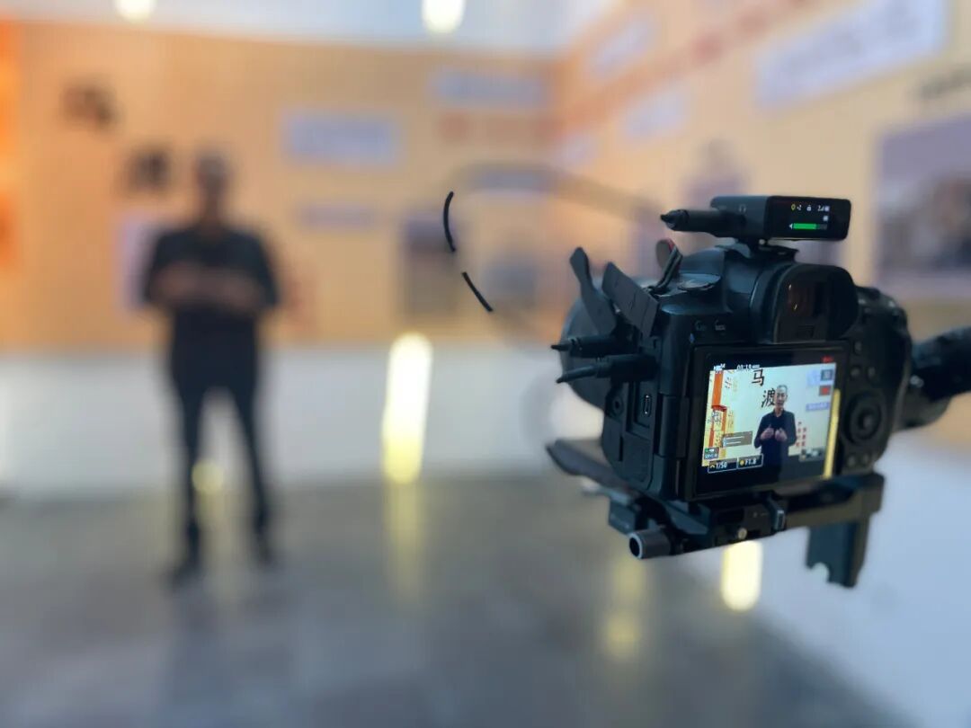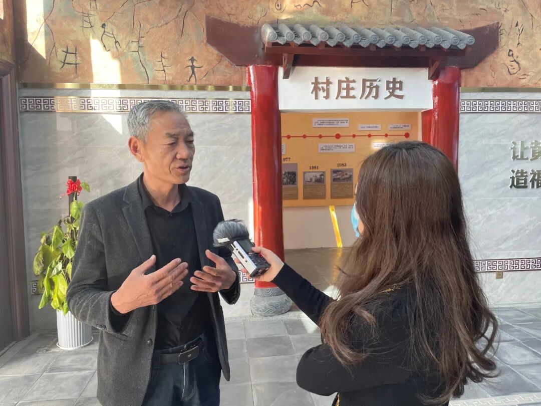 ▲记者李欣洁采访马渡村第一党支部书记尹金领