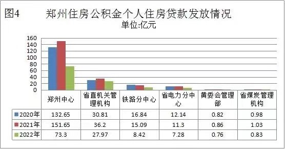 2022年,发放个人住房贷款2.2万笔 118.56亿元,同比分别减少43.97%、45.15%。其中,郑州中心发放个人住房贷款1.42万笔73.3亿元;省直机关管理机构发放0.45万笔27.97亿元;铁路分中心发放0.16万笔8.42亿元;省电力分中心发放0.14万笔7.28亿元;省煤炭管理机构发放0.02万笔0.83亿元;黄委会管理部发放0.01万笔0.76亿元。