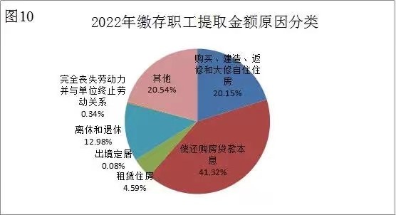 提取金额中,购买、建造、翻建、大修自住住房占20.15%,偿还购房贷款本息占41.32%,租赁住房占4.59%,离休和退休提取占12.98%,完全丧失劳动能力并与单位终止劳动关系提取占0.34%,出境定居占0.08%,其他占20.54%。提取职工中,中、低收入占93.73%,高收入占6.27%。