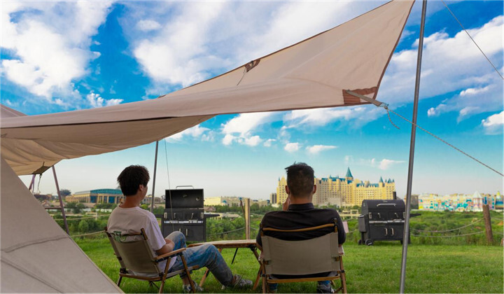 五月春夏交替,露营再次成为出游热门,位于云岩湖中心的银基云岩湖森林露营地联合银基水域俱乐部推出了烧烤露营套餐,在小岛上烧烤、露营、游湖、看星空,回归自然,拥抱自然。自带浪漫属性的银基摩天轮,国内首创4米直径的大球舱,梦幻的蒂芙尼蓝,在夕阳下,在星空里,享受假期浪漫的氛围感。