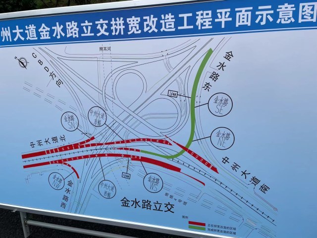 今天早上,中州大道金水路立交桥第一条拼宽匝道北向东转向匝道,顺利完成标线施画等扫尾施工,提前半个月通车。