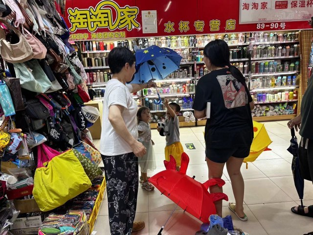 “有小孩儿的雨伞没?”上午,记者在中原区一家商品市场看到,销售雨具的摊位前陆续有顾客前来挑选。市民彭先生正为一双儿女选购心仪的雨伞。“家里的伞都是大人打的,孩子们太小,拿着也沉,所以就想着买个适合他们这个年龄段卡通的雨伞,他们打着伞也高兴、也喜欢。”