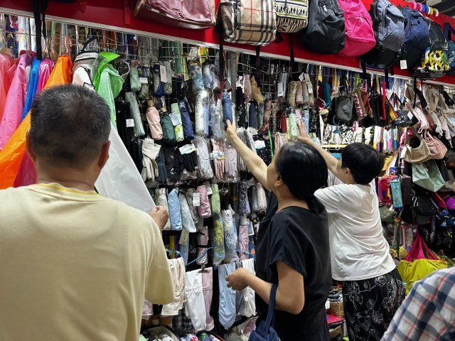 除了雨伞,店里的雨衣、雨鞋等也成为近日热销品。店家王女士表示,假期里,防雨用品受到了消费者的青睐,销售量增长不少。“这段时间学生放假,家长带着孩子去旅游,他们都会来这儿采购一些一次性雨衣,或者简易性、便携式的雨衣、鞋套,前几天有人都买了七八套雨衣、雨鞋,这一段销量还是可以的。”