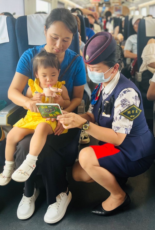 李萌:2023年8月1日,这是疫情放开后的首个暑运,列车客流量相较往年明显增大,但这丝毫不影响乘务班组的工作热情。为了确保暑运工作平稳有序,让旅客体验更美好”的理念,高铁四队长周4组列车长李萌奋战在暑运一线。在G7960次列车上分别为重点旅客提供服务,向旅客宣传暑运期间的旅行安全注意事项,为旅客答疑解惑;加强车门口的安全提醒。展示人民解放军团结、积极、向上的精神面貌、进而继承和发扬解放军的光荣传统和优良作风,明白当今幸福生活来之不易,激发旅客们的爱国情怀。