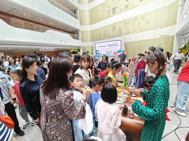 在馆内二楼大厅中心区域,诗词接龙、古诗竞答、赏画吟诗等竞赛类项目按照时间表轮番开展,每一位参与读者完成相应挑战后均获得一份精美礼品奖励。茶香琴韵、能说善画、棋艺比拼等环节给现场读者带来全方位的沉浸式体验,再现一场千年古韵雅集,沉浸式体验中华美学,在图书馆里度过奇妙的一天。
